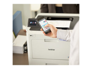 Accelerate workplace productivity and print high-quality documents by using this color laser printer. A 2.7-inch touchscreen makes it easy to queue up jobs and adjust print settings, while integrated Wi-Fi connectivity lets you print directly from cloud services, office computers, and smartphones. Print speeds of up to 33 pages per minute make handling high-volume tasks simple, while a maximum resolution of 2400 x 600 dpi ensures printed documents look crisp and detailed. Enjoy uninterrupted printing performance with the 750-sheet input tray that can complete most high-volume jobs without needing to be refilled. The 50-sheet multipurpose tray allows for printing on envelopes and nonstandard paper sizes, while the 150-sheet output tray helps keep documents in order after printing. Featuring an 800MHz processor and 512MB of print memory, this Brother printer boots up quickly and delivers fast responsive performance.