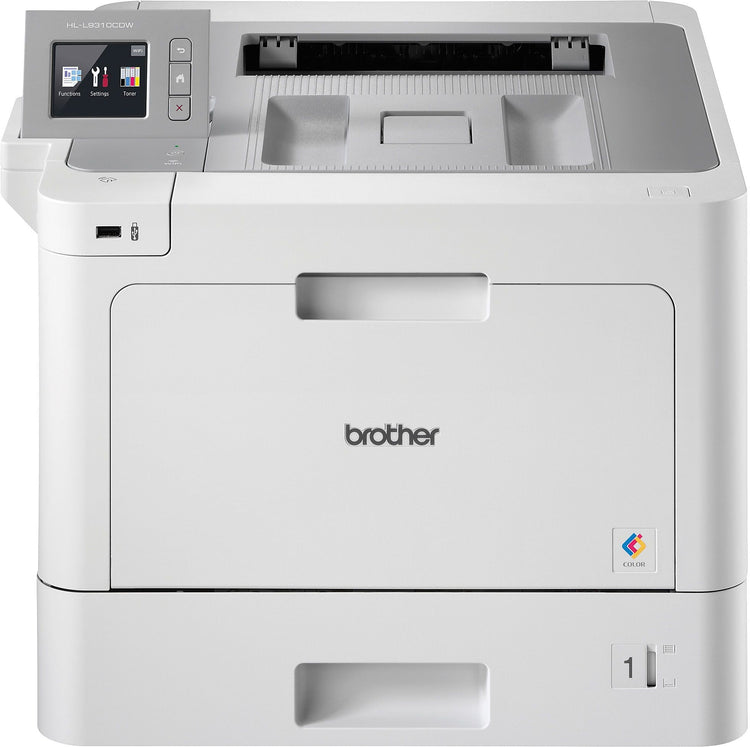The Brother HL-L9310CDW color laser printer is an excellent choice for mid-sized workgroups with demanding print volumes that need a low total cost of ownership and reliable, business quality output. In-box 6,500-page toner cartridges offer built-in value, and ultra high-yield 9,000-page replacement toner cartridges offer low cost output‡. This high-performance printer helps to increase your productivity with print speeds up to 33ppm and a 2.7" Touchscreen display for easy navigation and direct printing from popular business cloud services‡. Scalable for virtually any office, add either optional trays to increase capacity to 1,300 sheets or transform this printer into a floor-standing model with the tower tray option (520 sheets x 4 trays). Advanced security features offer network user authentication and help limit document and device access.