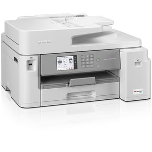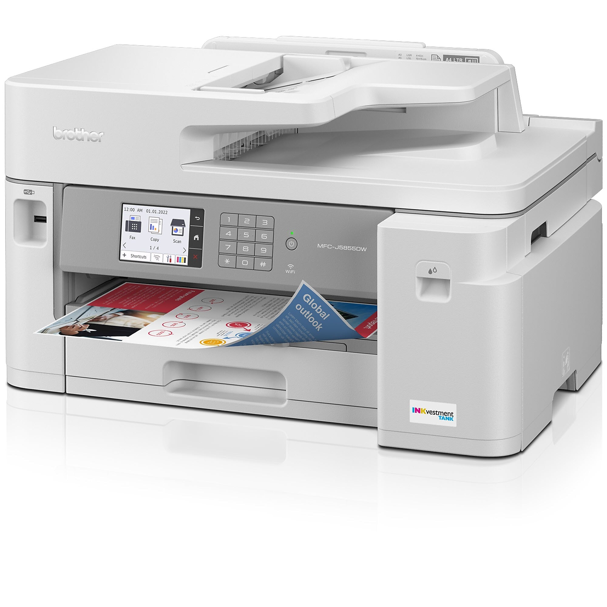 You can ink big with the Brother MFC-J5855DW INKvestment Tank color all-in-one inkjet printer, loaded with a 1-year of ink supply in the box. Powered by Brother MAXIDRIVE inkjet technology, this dynamic printer delivers supersharp images, text, and graphics with print speeds up to 30 pages per minute, black and color. This multifunction Brother INKvestment Tank printer is versatile enough to handle almost any home or work project need, from school reports to business proposals. Robust triple-layer security helps safeguard sensitive documents and securely connect to the device and network while printing. Productivity and efficiency combine as you connect and print wired, wirelessly, or even on the go with the Brother Mobile Connect app. Built to last and designed for exceptional ease of use right out of the box.