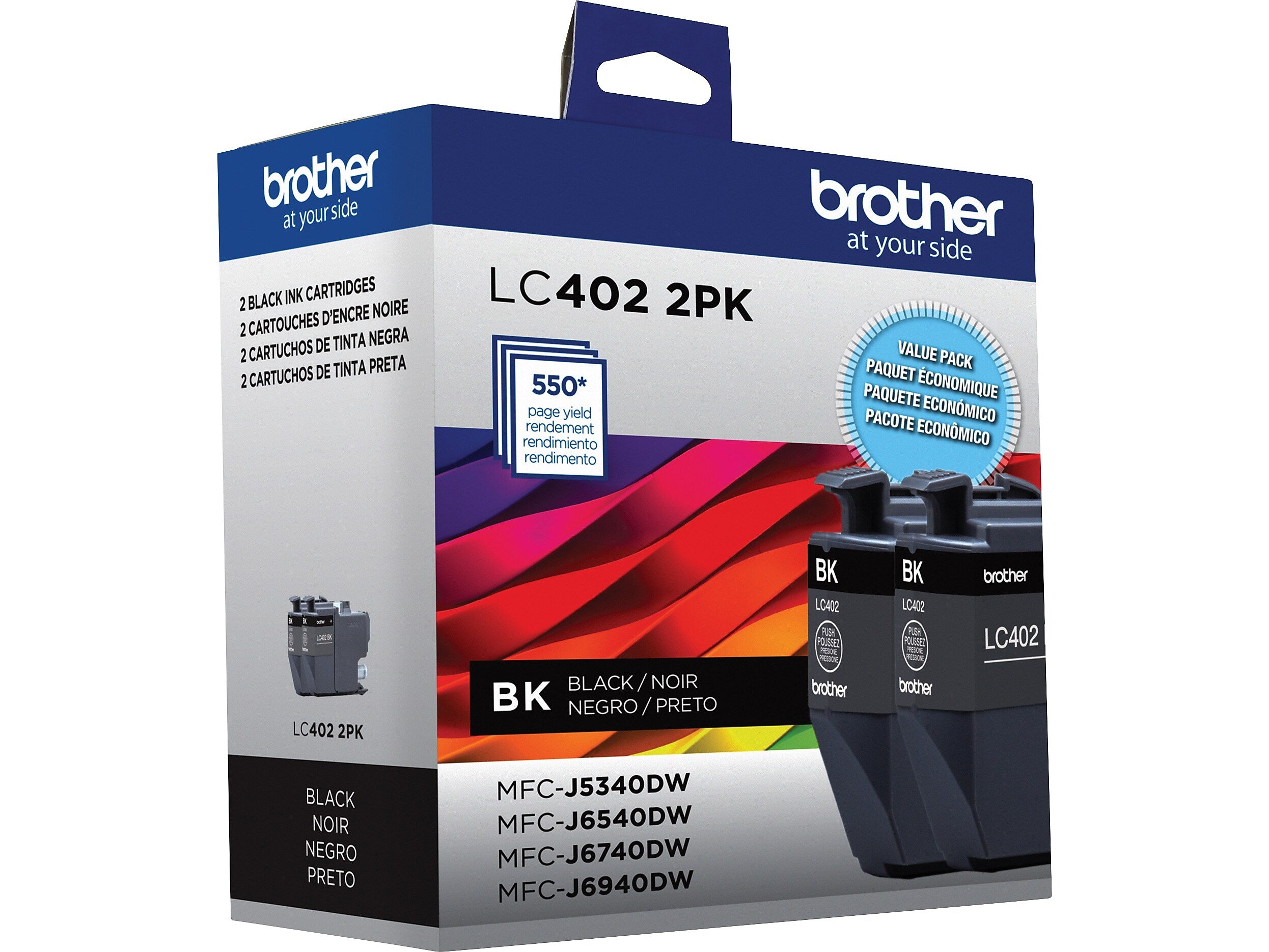 Brother LC402 Black Standard Yield Ink Cartridge, 2/Pack (LC4022PKS)