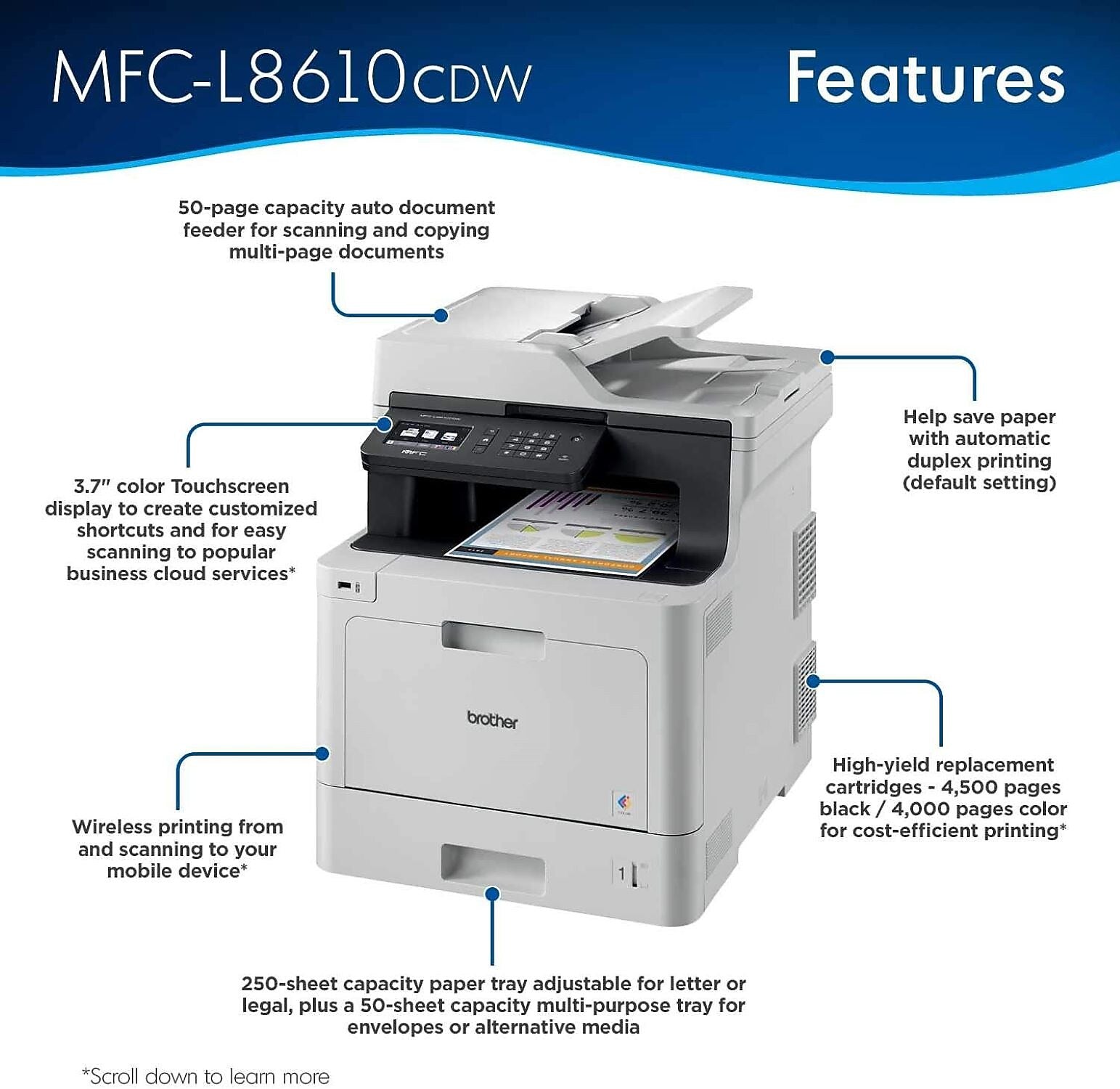 Brother MFC-L8610CDW Wireless Color Laser Printer, All-In-One, Print, Scan, Copy, Fax