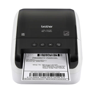 This business-quality label printer lets you create cost-effective paper labels for packages, envelopes, postage and more. The automatic crop function lets on-line sellers easily print product and other barcode labels from A4/Letter size label sheet templates (Windows only). The Brother QL-1100C delivers fast printing up to 69 standard address labels per minute with black text at 300dpi. Auto cutter allows for printing 1 or multiple labels at a time, helping eliminate wasted label sheets. The Brother QL-1100C permits users to create and print custom labels easily. Simply connect to your computer to design and print customized labels. You can also download the free Brother iPrint&Label app(1) to design labels with your Android™ device with the purchase of a USBtoGO cable connection. The Brother QL-1100C series label printers utilize direct thermal printing, meaning that there are no expensive inks, toners, or ribbons to replace. Changing Brother DK rolls is simple – just drop them in and they fit easily. Use Brother Genuine label rolls for consistent high-quality output. The Brother QL-1100C is compatible with Windows and Mac® and integrates with Microsoft Word, Excel, and Outlook. The Brother “Plug & Label” feature requires no software installation for Windows PCs. Simply print high-quality labels from Microsoft Word, Excel, and Outlook. This product is covered by a two-year limited warranty and exchange service by Brother.