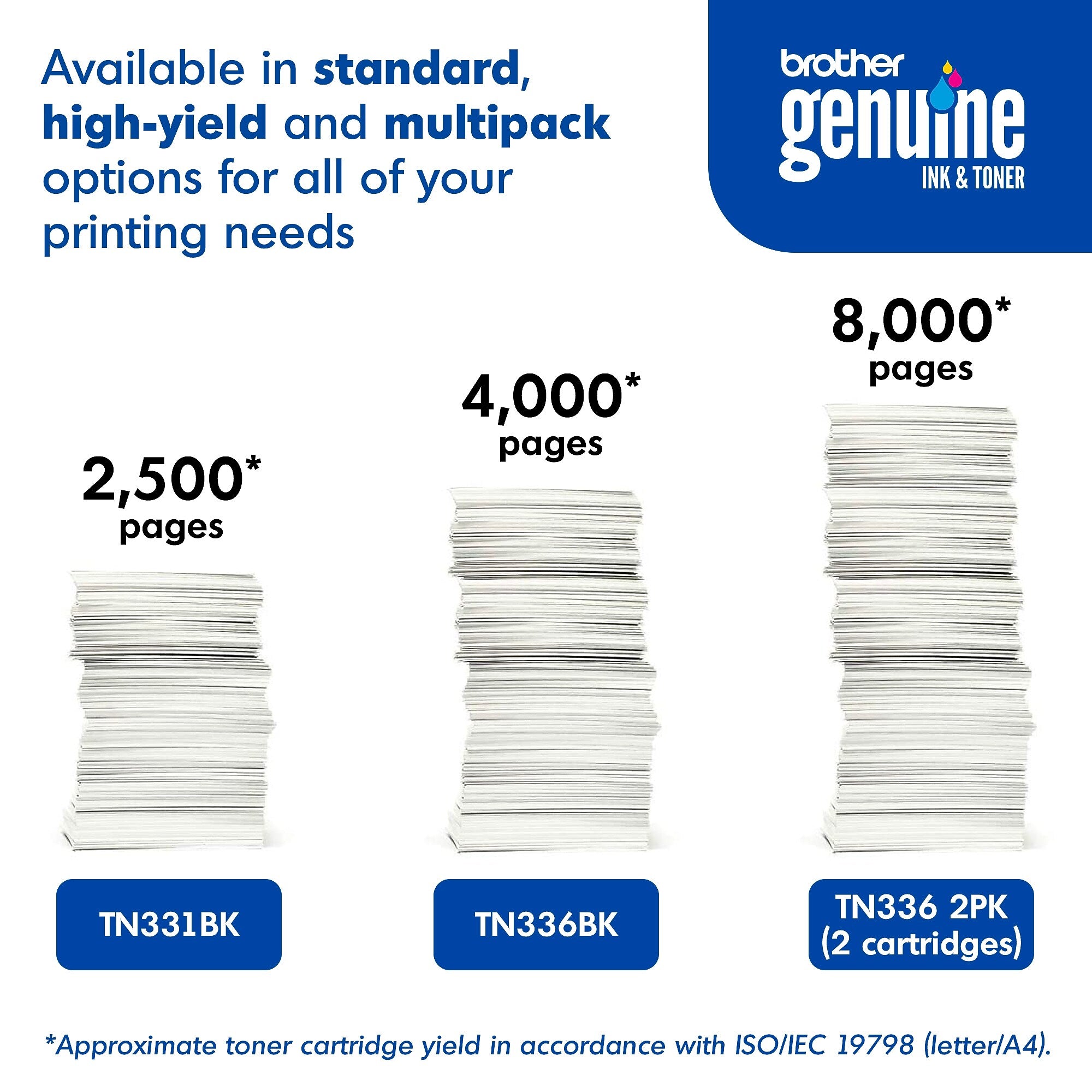 - Brother Genuine TN3362PK High-Yield 2 Pack Black Ink Cartridges.