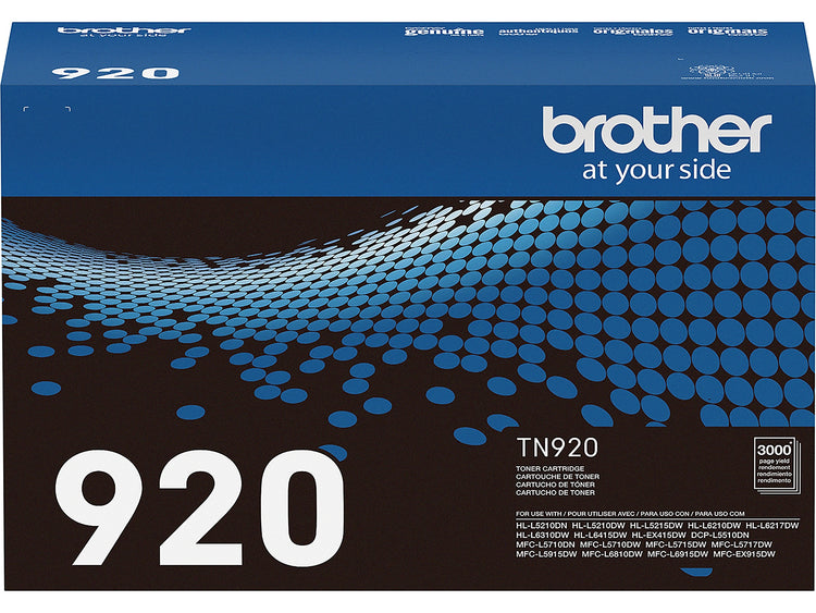 - The Brother Genuine TN920 standard yield toner cartridge is for use with the Brother HL‐L5210DN, HL‐L5210DW, HL‐L5210DWT, HL‐L5215DW, HL‐L6210DW, HL‐L6210DWT, HL‐L6217DW, HL‐L6310DW, HL‐L6415DW, HL‐L6415DWT, HL‐EX415DW, DCP‐L5510DN, MFC‐L5710DN, MFC‐L5710DW, MFC‐L5715DW, MFC‐L5717DW, MFC‐L5915DW, MFC‐L6810DW, MFC‐L6915DW, and MFC‐EX915DW.