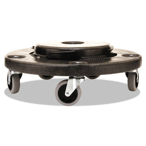 Brute Round Twist On/Off Dolly, 250 lb Capacity, 18" dia x 6.63"h, Fits 20 to 55 Gallon BRUTE Containers, Black