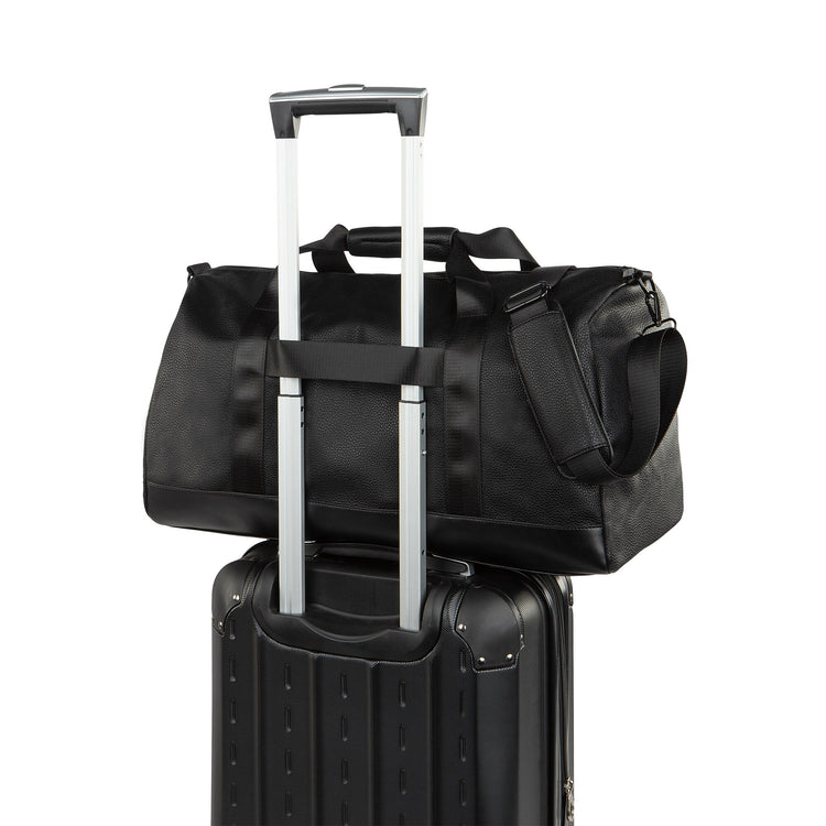 The Central collection duffle is your new go-to travel companion. Made with textured vegan leather, this duffle is not only stylish, but sustainable. Whether you're a frequent traveler or just looking for a stylish and functional duffle for your next trip, the Central collection classic duffle bag is the perfect choice.