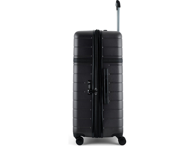 This large check-in suitcase from the Hamburg collection by Bugatti is lightweight, easy to maneuver yet durable and secure. With a telescopic trolley handle that locks in two separate positions, four double spinner wheels for precise control and a TSA lock, this piece is the perfect companion for travelers in search of a hassle-free journey. With innovative features and high-quality design, this check-in case ensures a seamless travel experience. Whether you're exploring new destinations or embarking on business trips, the Hamburg collection has everything you need to make your travels worry-free.