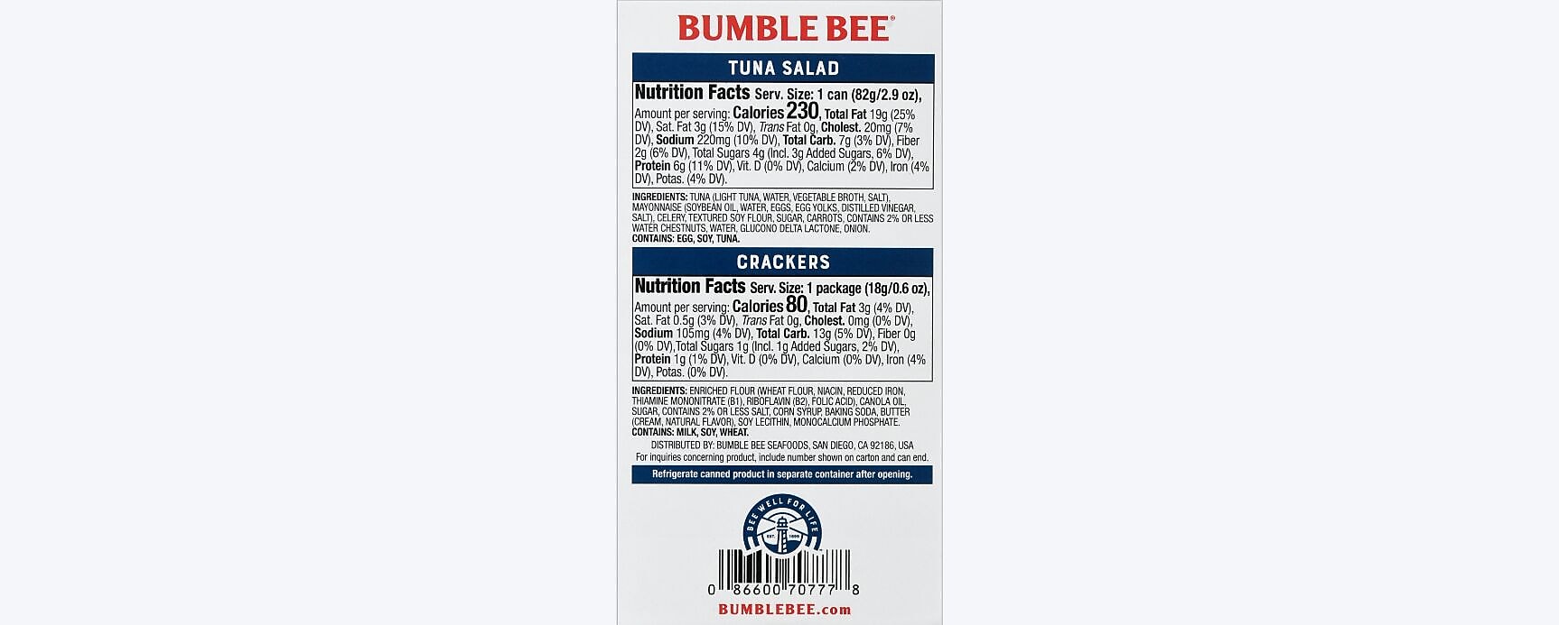 Serving Size | 1 Can of Tuna and 1 Package of Crackers |