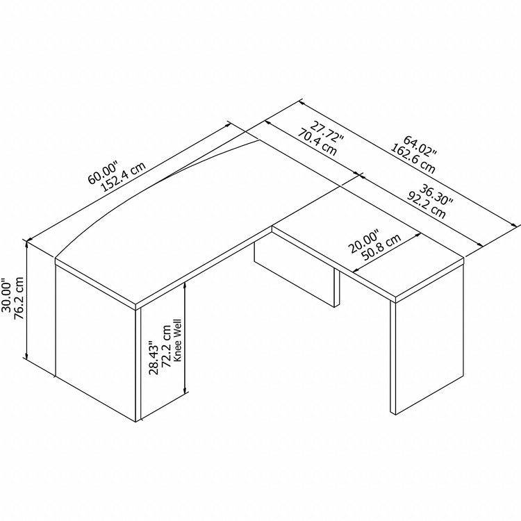 The Bush Business Furniture Echo L Shaped Bow Front Desk creates a strong presence perfect for those whose passion for business is only matched by their fashionable tastes. Blending a Pure White finish with appealing wide lines, the contemporary Desk inspires and gives a residential feel to the modern workspace. Thick and durable, a thermally fused laminate finish endures years of everyday use to maintain the elegance of the white Desk. Spread out on the spacious L Shaped surface with your computer, paperwork or any other tasks of the day. The Bow Front design impresses while encouraging placement in the middle of an office or room. Attach the 36 inch Return to either side of the Desk to form a left or right-handed layout. From Bush Business Furniture, Echo comes with a 3 Year Warranty and meets ANSI/BIFMA standards.