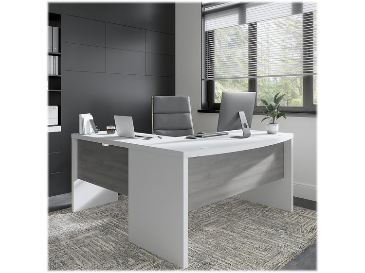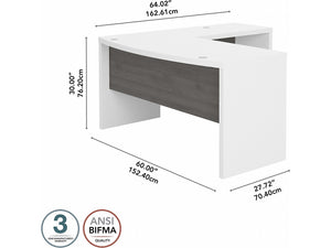 Bush Business Furniture Echo 60"W L Shaped Bow Front Desk, Pure White/Modern Gray (ECH025WHMG)