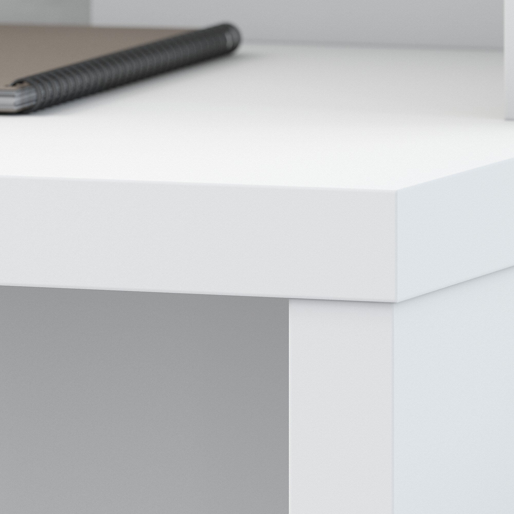 The Bush Business Furniture Echo L Shaped Desk offers an elegant, functional design to inspire today's professional. Wide lines and a thick surface create a strong presence while a thermally fused laminate finish protects the white Desk throughout years of daily use. Spread out on the spacious L Shaped surface with your computer, paperwork or any other tasks of the day. Attach the 36 inch Return to either side of the Desk to form a left or right-handed layout. From Bush Business Furniture, Echo comes with a 3 Year Warranty and meets ANSI/BIFMA quality standards.