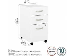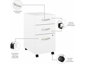 Bush Business Furniture Hybrid 3-Drawer Mobile Vertical File Cabinet, Letter/Legal Size, Lockable, White (HYF216WHSU-Z)