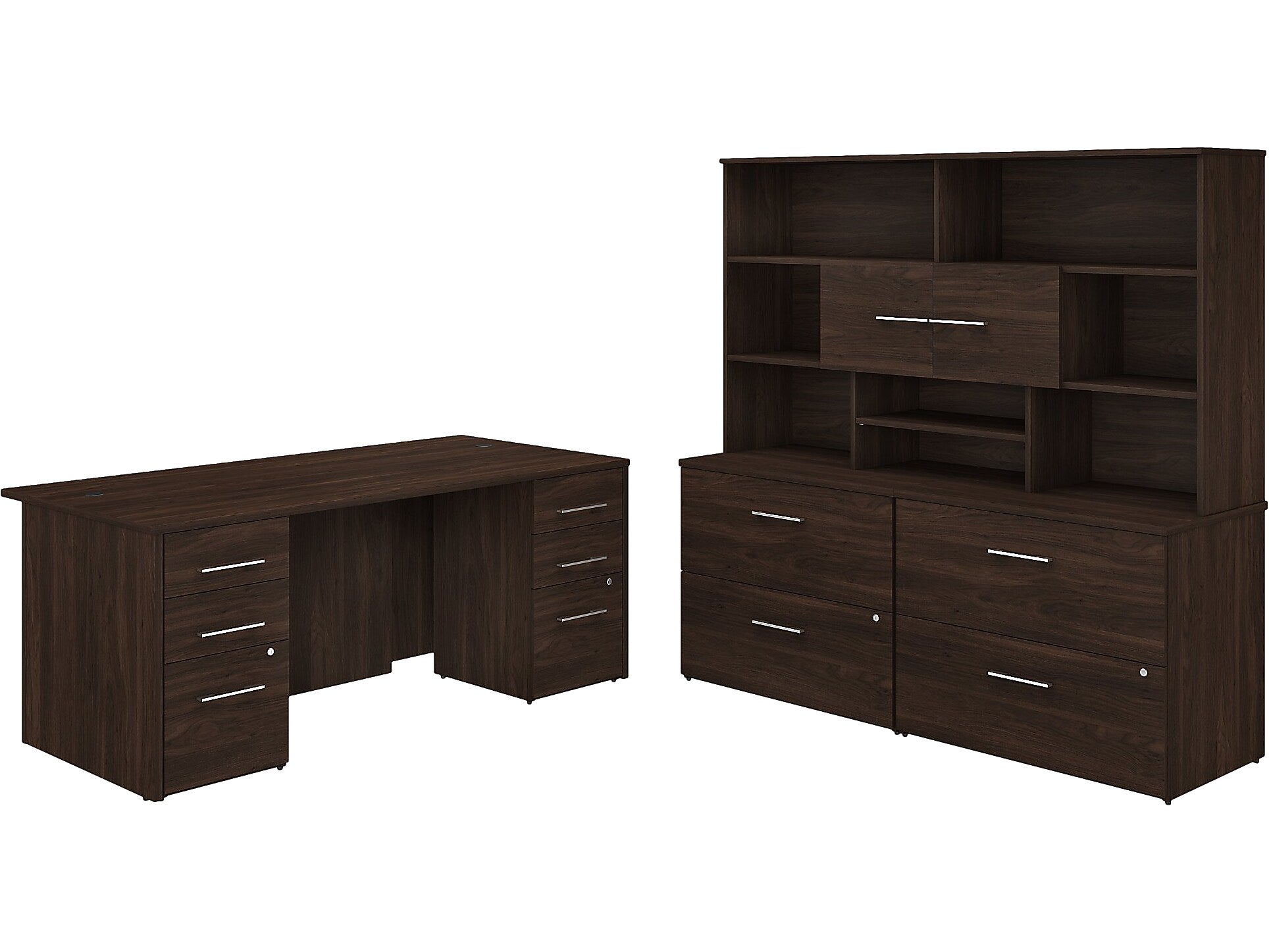 Bush Business Furniture Office 500 72"W Executive Desk with Drawers, Lateral File Cabinets and Hutch, Black Walnut (OF5001BWSU)