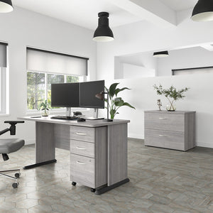 - Small file cabinet fits under coordinating Studio A desks (sold separately) for a space-saving office configuration