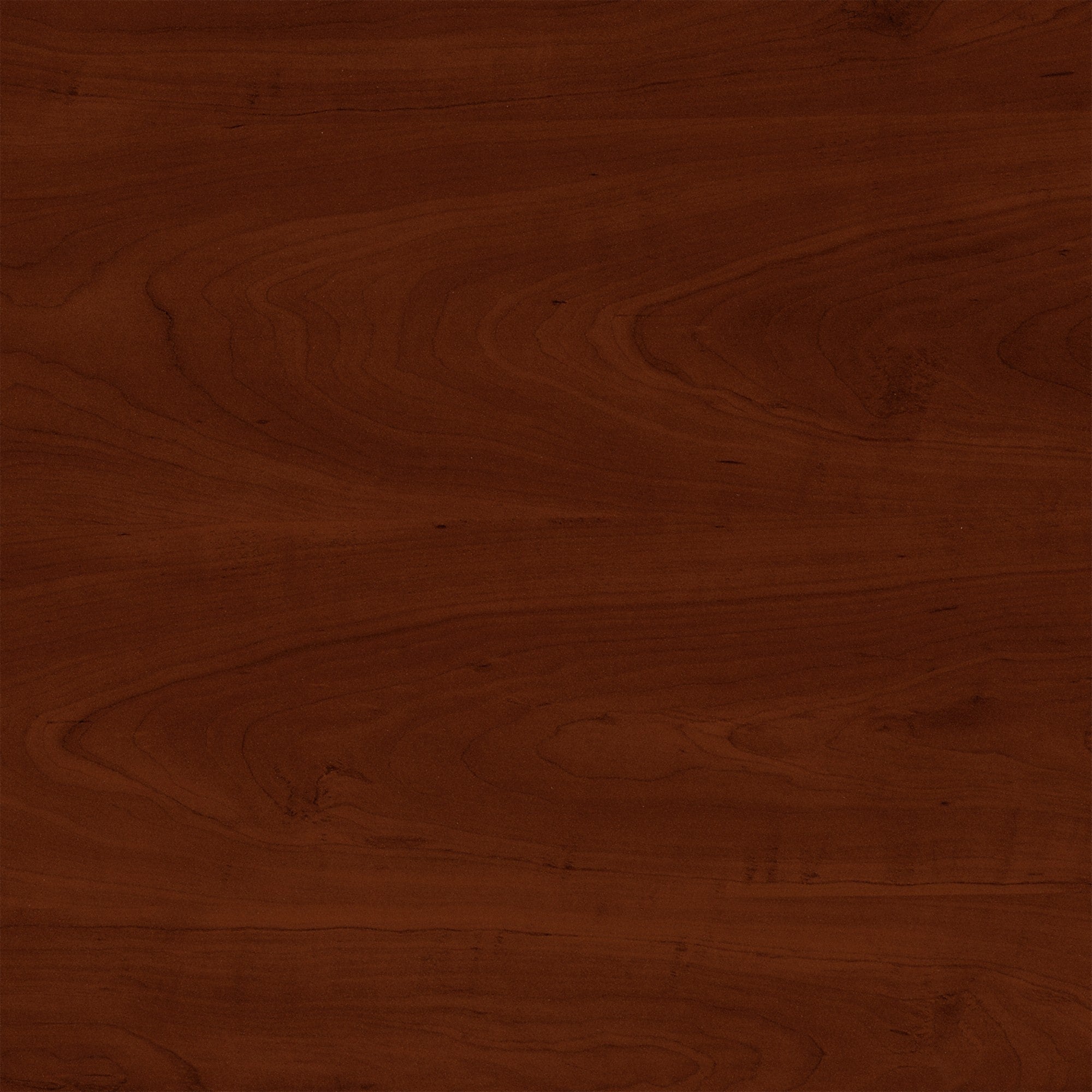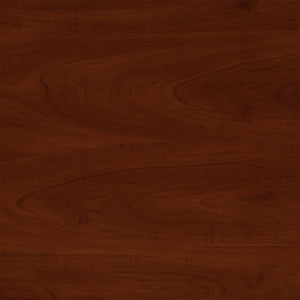 - Made of laminate over engineered wood and comes in Hansen cherry finish with brushed nickel hardware