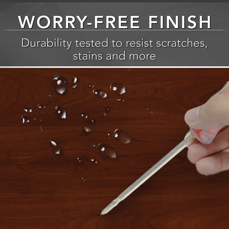 - Thermally fused laminate finish fends off scratches and stains to protect the office furniture set