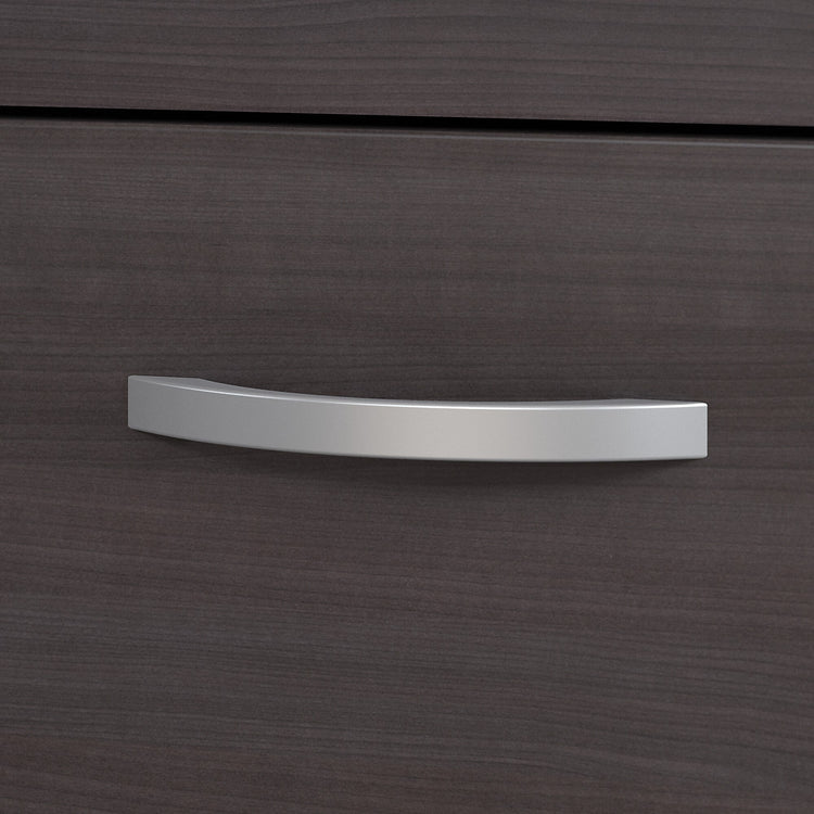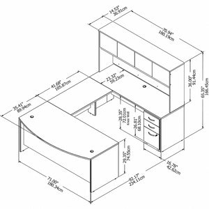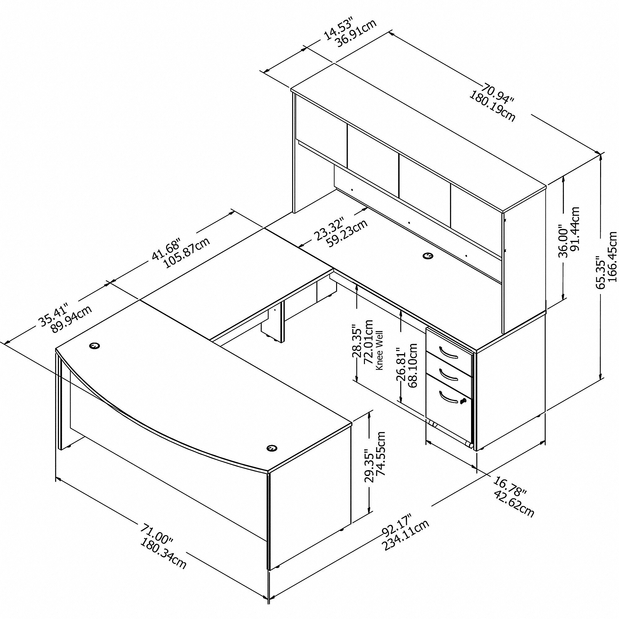 Give your office the workspace you need and the style you deserve with this Bush Business Furniture Studio C U Shaped Desk with Hutch and Mobile File Cabinet. The extended surface of the 72W x 36D Bow Front Desk offers guests a rounded front to pull up a chair and collaborate, while the expansive U shaped configuration has all the room you could ever want to spread out and multitask. With a thermally fused laminate finish, this office set stands up to years of everyday use. Keep pesky computer cords out of your way with a cable management system for a neat work surface. With 4 doors featuring self-closing Euro-style hinges, the Hutch conveniently stores office supplies, books and more. The 3 Drawer Mobile File Cabinet rolls with you throughout your office or remains in place as needed on any surface. The popular, classic office furniture design receives a contemporary update with trendy White and Storm Gray finish options to fit seamlessly in a private office or as part of a larger environment. This office set comes with a 10 Year Warranty and meets ANSI/BIFMA quality test standards for performance and safety. American made with U.S. and imported parts.