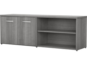 - Low storage cabinet with doors and shelves offers a stylish, long-lasting workplace organization solution for today's professionals