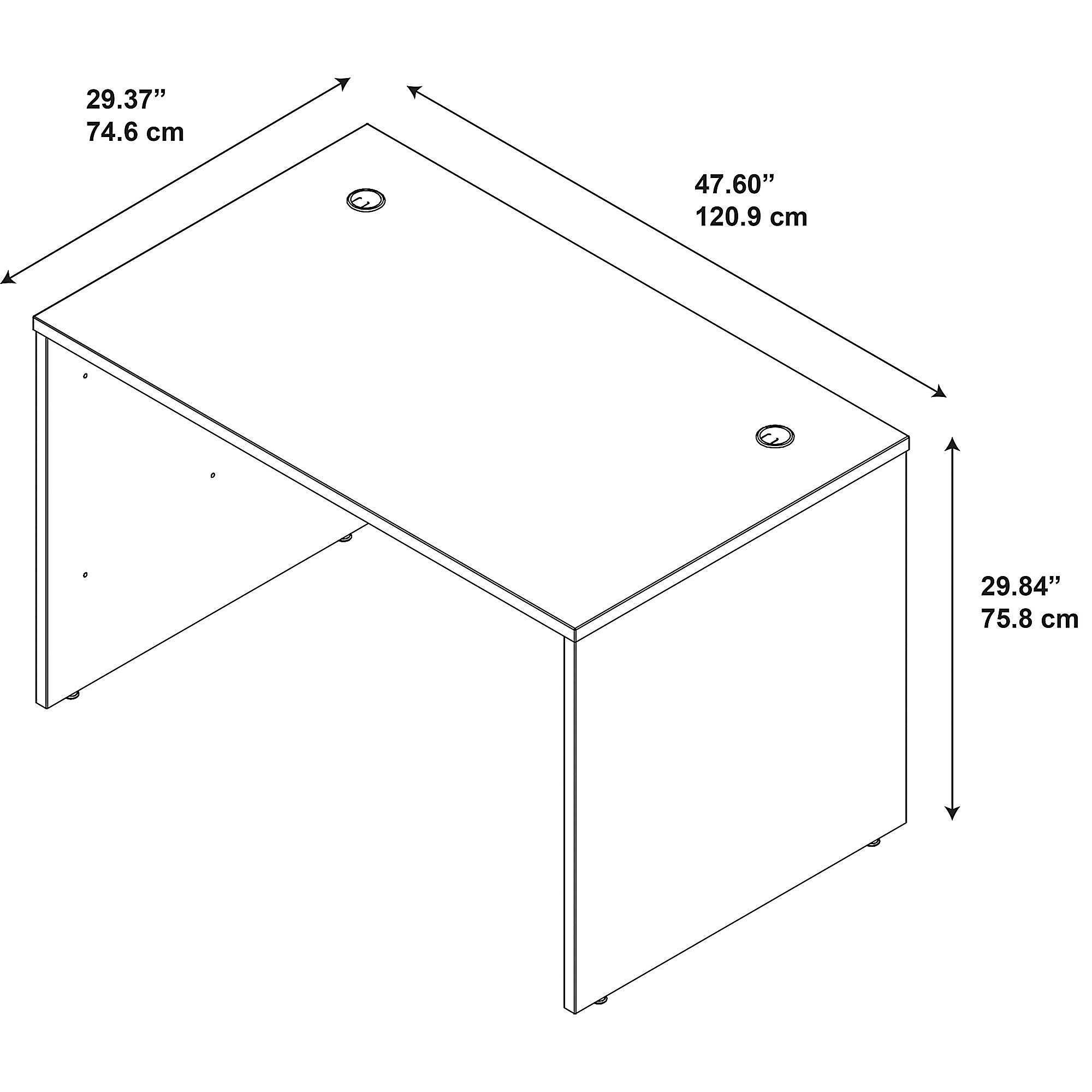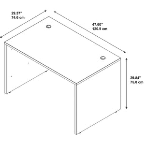 The Westfield 48W x 30D Desk Shell in Mocha Cherry offers a variety of workspace solutions within one robust collection. The versatile shell design permits a variety of workspace configurations with a clean, private and simplified appearance. The thermally fused laminate construction delivers strength and durability with a beautiful rich surface for an exceptional value that lasts for years. Integrated wire management is built into work surface keeping work areas clear. Compensate for uneven floor surfaces with adjustable levelers. This solid, proven family of products fits all of your home or professional office needs regardless of space, future expansions and budgets. Meets ANSI/BIFMA standards for safety and performance in place at time of manufacture. Backed by Bush Business Furniture's 10 Year Warranty. American made with U.S. and imported parts.
