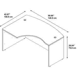 Choose this Westfield 60W x 43D Left Hand L-Bow Desk Shell in Mocha Cherry for your office update. Constructed with thermally fused laminate for durability and superior resistance to scratches and stains alongside an attractive rich finish for long lasting beauty. Create an expansive corner workstation with any Westfield Credenza or Return Bridge on the left hand side of the Desk. You'll enjoy the integrated wire management grommets on desktop to conceal cables and keep your desk area uncluttered. Compensate for uneven floor surfaces with adjustable levelers. This component is also compatible with the Westfield Elite Collection for a cohesive style. Meets ANSI/BIFMA test standards in place at time of manufacture. The Westfield Collection is backed by the Bush Business Furniture's 10 Year Warranty. American made with U.S. and imported parts.