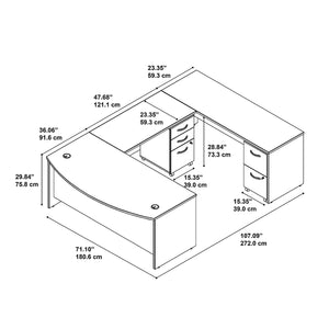 Sophisticated and spacious, this Bush Business Furniture Westfield U Shaped Desk brings commercial-quality features and durability to the workplace. The expansive wraparound U Shaped Desk includes all the room a busy professional needs to spread out for years of productivity. An inviting Bow Front design offers an extended surface for guests to pull up chairs and collaborate, while integrated wire management controls your electronics cables for a tidy workspace. The thermally fused laminate surface and sturdy construction combine with Brushed Nickel hardware and extended modesty panels for a lasting professional appearance you'll love. The Mobile File Cabinets lock for your security and feature 3 full-extension file drawers and 2 box drawers combined. Westfield offers endless layout options and 7 finishes. Backed by a 10 Year Warranty. American made with U.S. and imported parts.