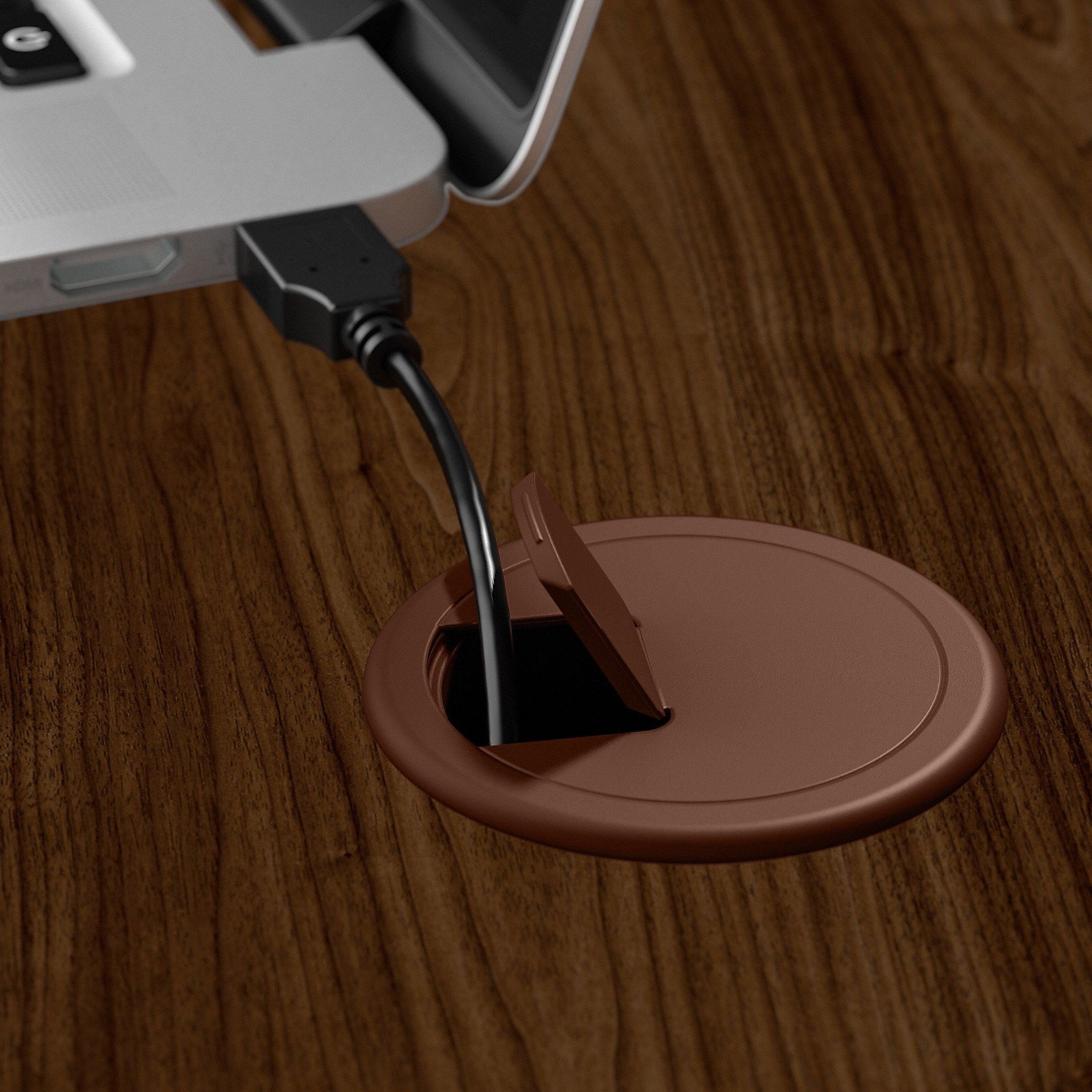 - Corner desk surface includes built-in wire management and a 4-port USB hub for connecting electronic devices