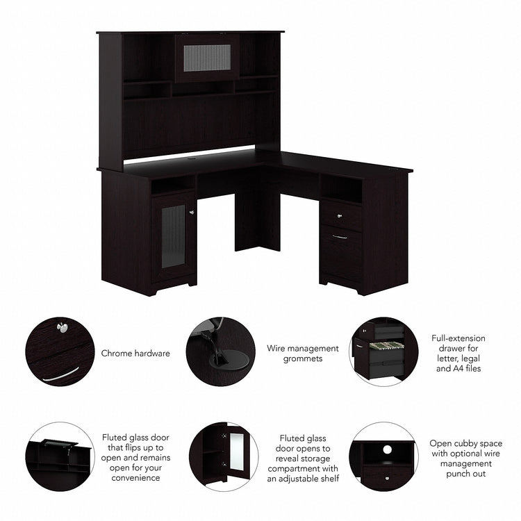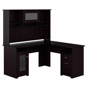 Bush Furniture Cabot 60"W L Shaped Computer Desk with Hutch and Storage, Espresso Oak (CAB001EPO)