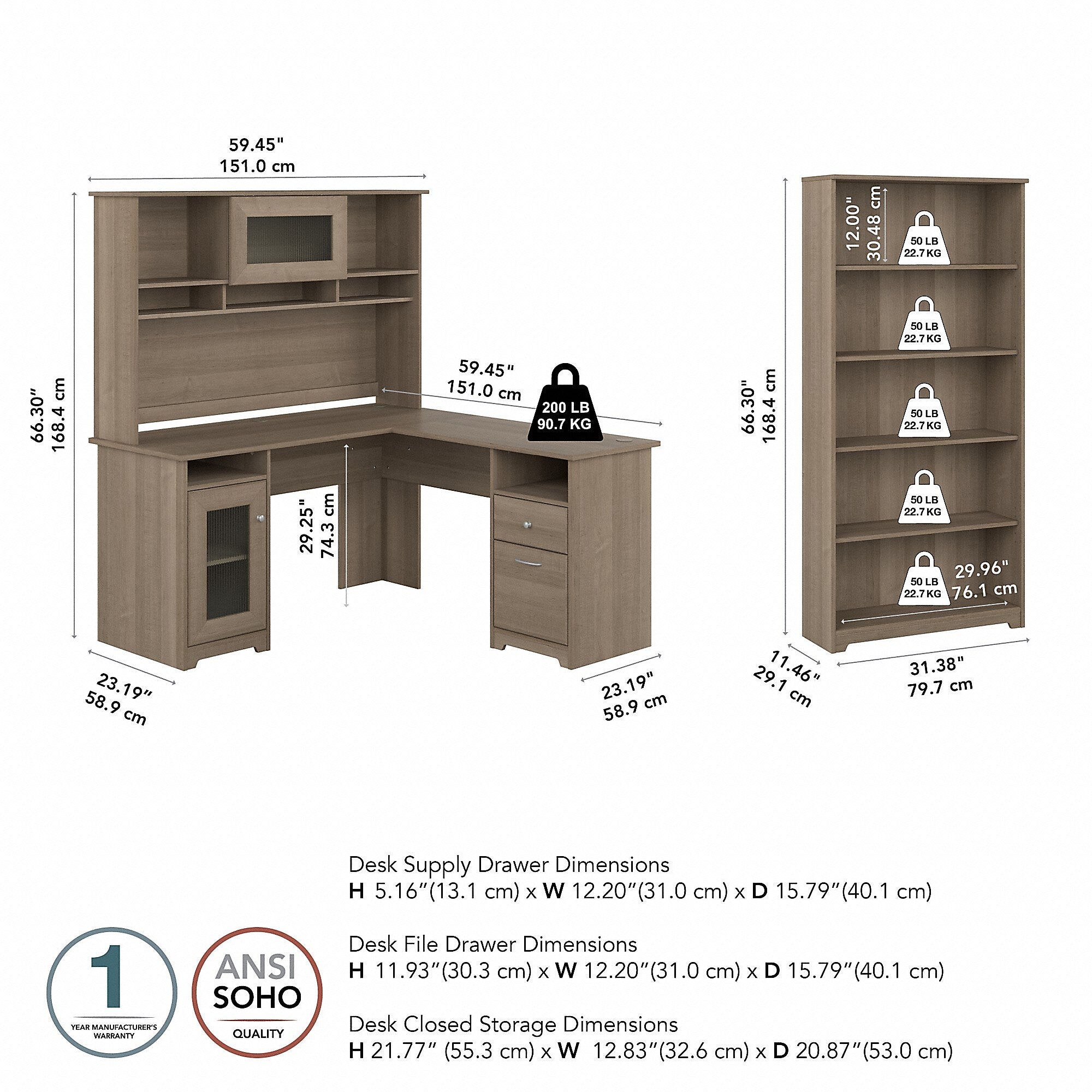 Bush Furniture Cabot 60"W L-Shaped Desk with Hutch and 5-Shelf Bookcase, Ash Gray (CAB011AG)