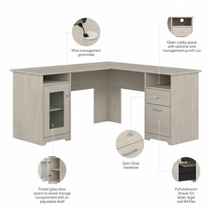 Bush Furniture Cabot 60"W Wood L-Shaped Computer Desk, Linen White Oak (WC31130K)