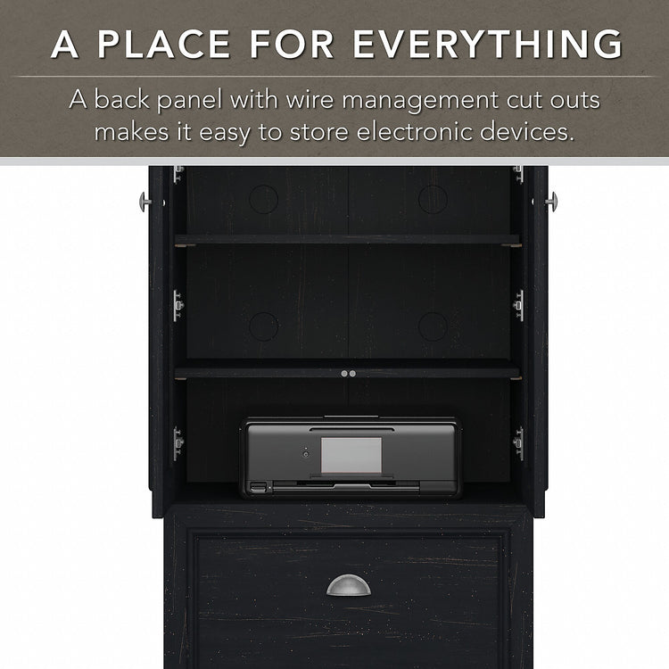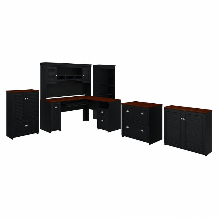 Bush Furniture Fairview 60"W L Shaped Desk with Hutch, Bookcase, Storage and File Cab, Antique Black/Hansen Cherry (FV014AB)
