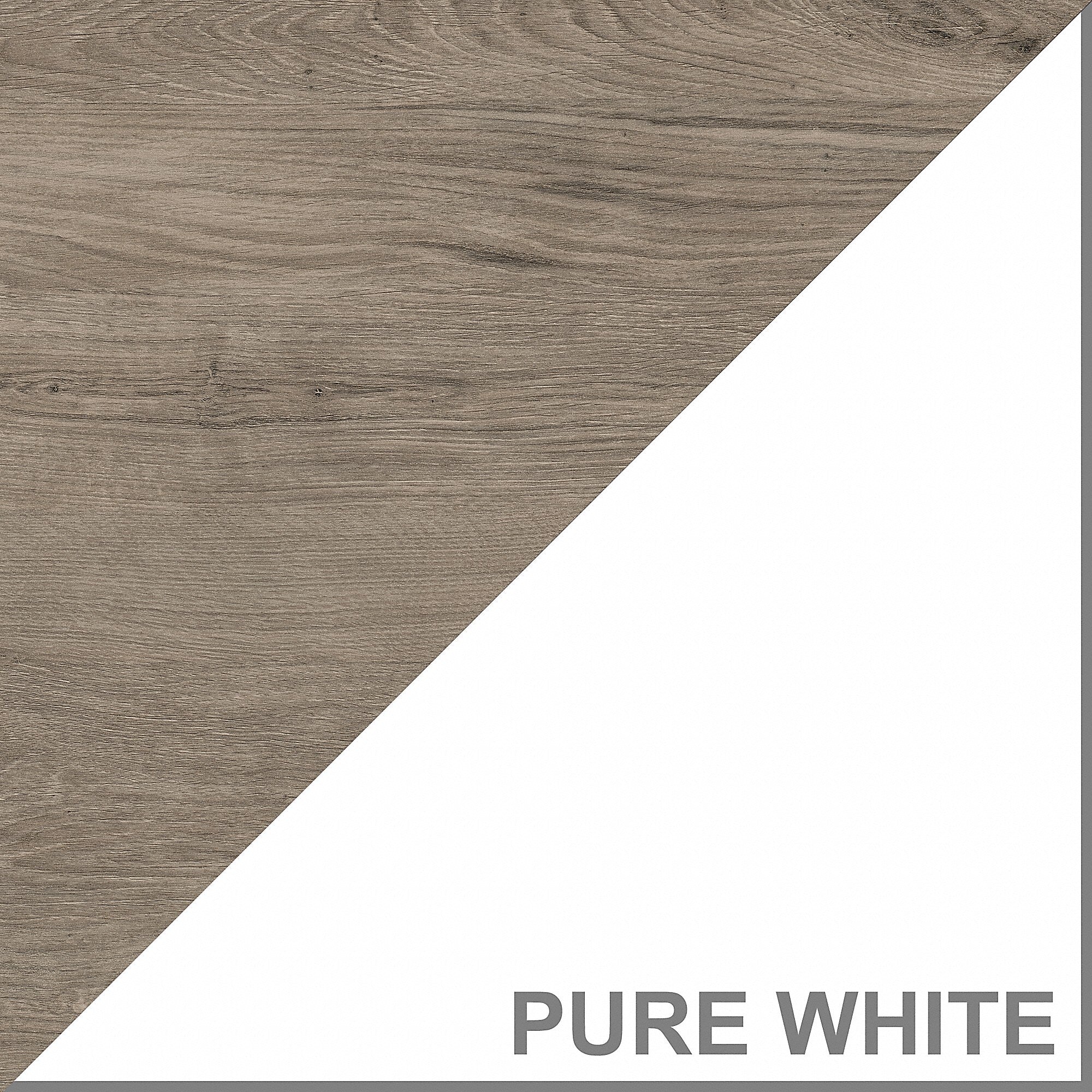 - Made of laminate over engineered wood with tumbled pewter hardware and comes in shiplap gray/pure white finish