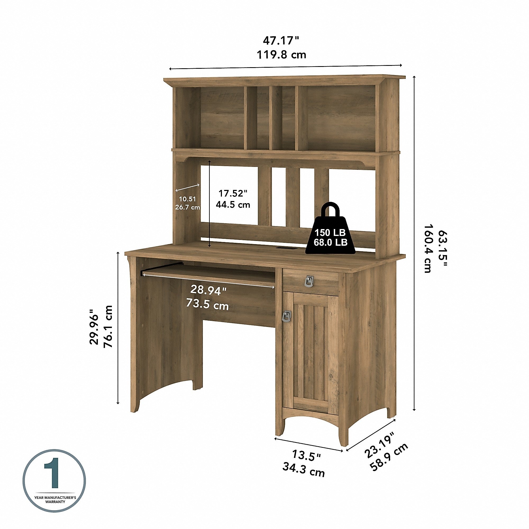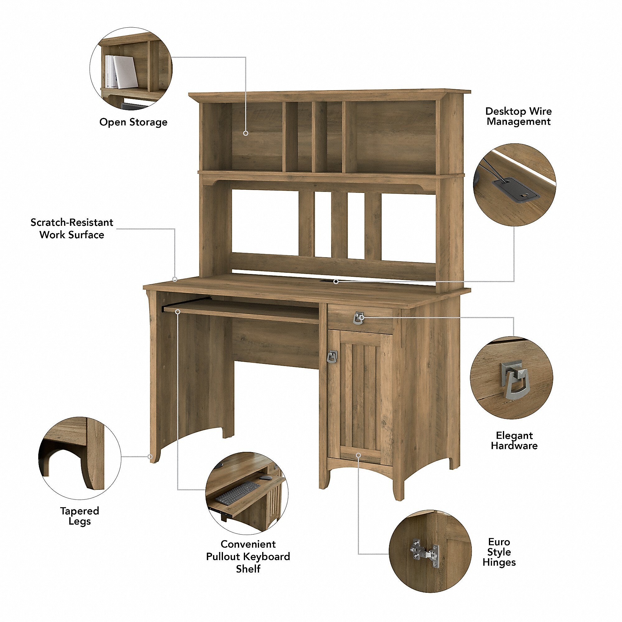 Bush Furniture Salinas 48"W Small Computer Desk with Hutch, Reclaimed Pine (MY72408-03)