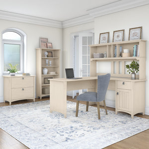 Bush Furniture Salinas 60"W L Shaped Desk with Hutch, Lateral File Cabinet and 5 Shelf Bookcase, Antique White (SAL007AW)