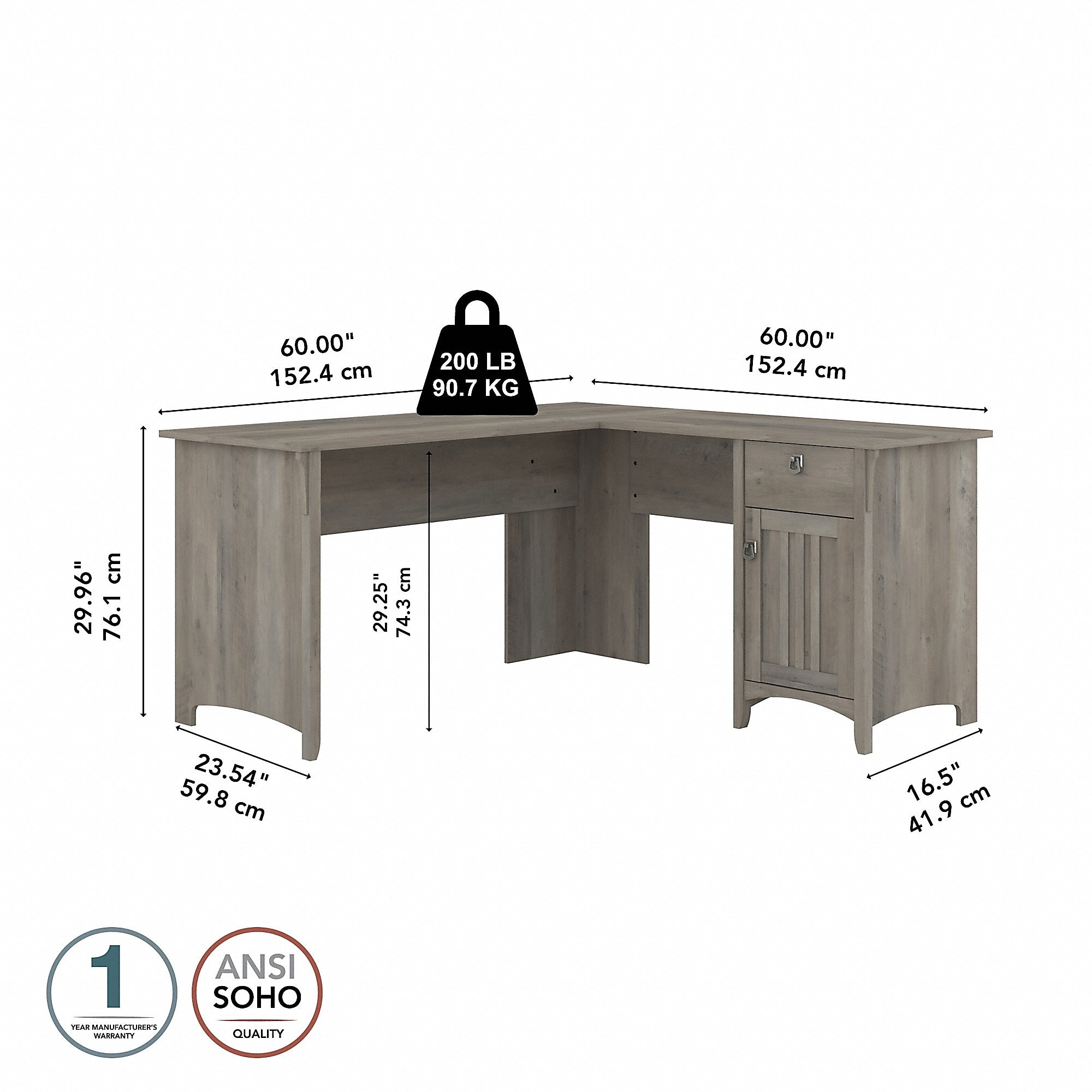 Bush Furniture Salinas 60"W L Shaped Desk with Storage, Driftwood Gray (SAD160DG-03)