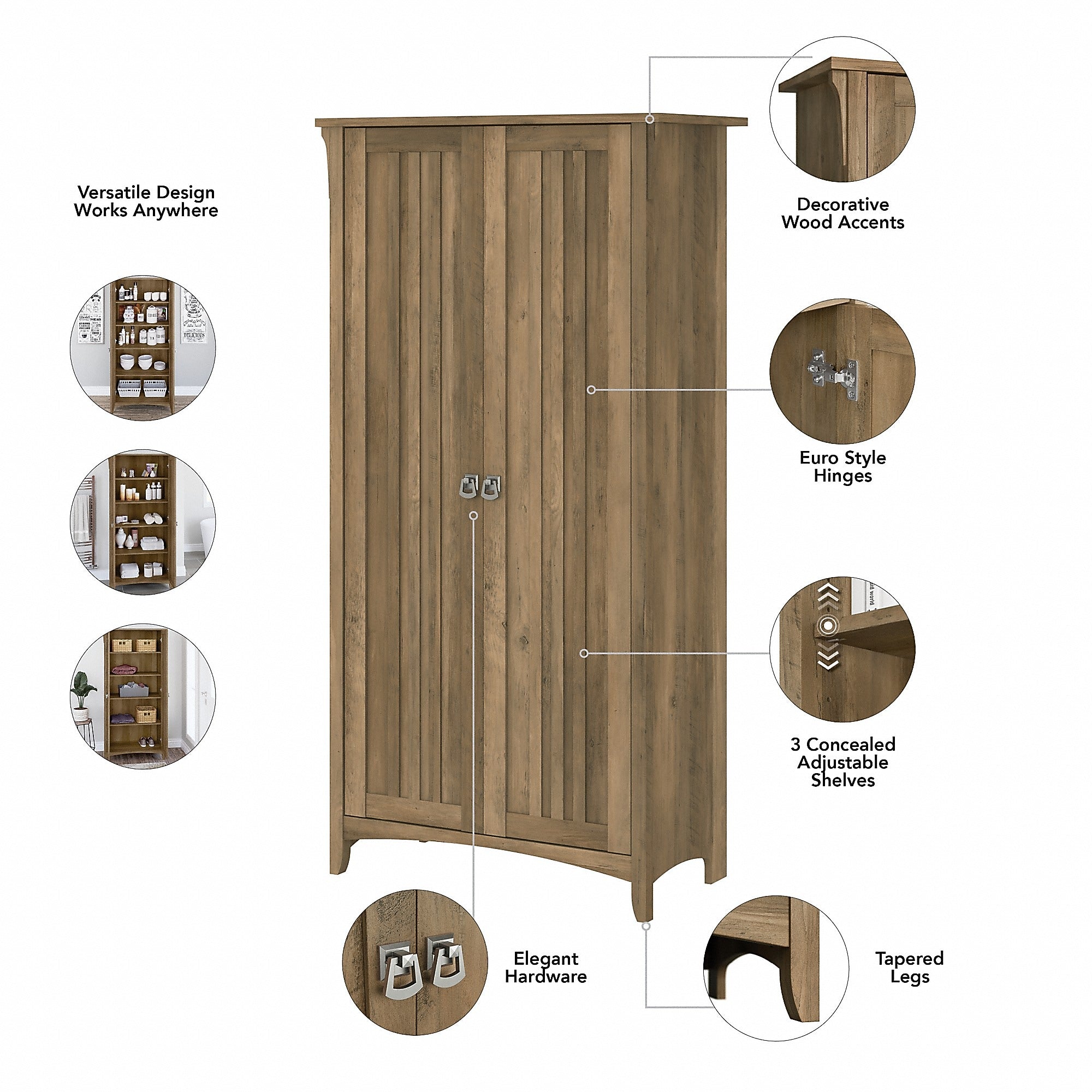 Bush Furniture Salinas 63" Tall Storage Cabinet with 4 Shelves, Reclaimed Pine (SAS332RCP-03)