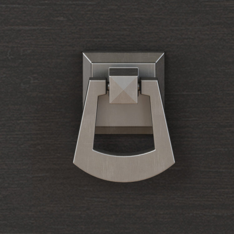 - Elegant metal drop pull hardware finished in Tumbled Pewter