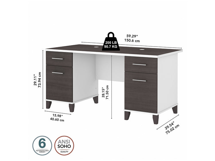 Bush Furniture Somerset 60" Computer Desk, Storm Gray/White (WC81028K)