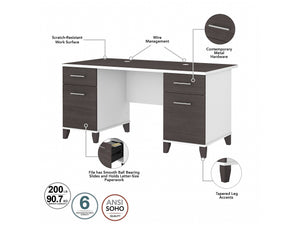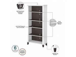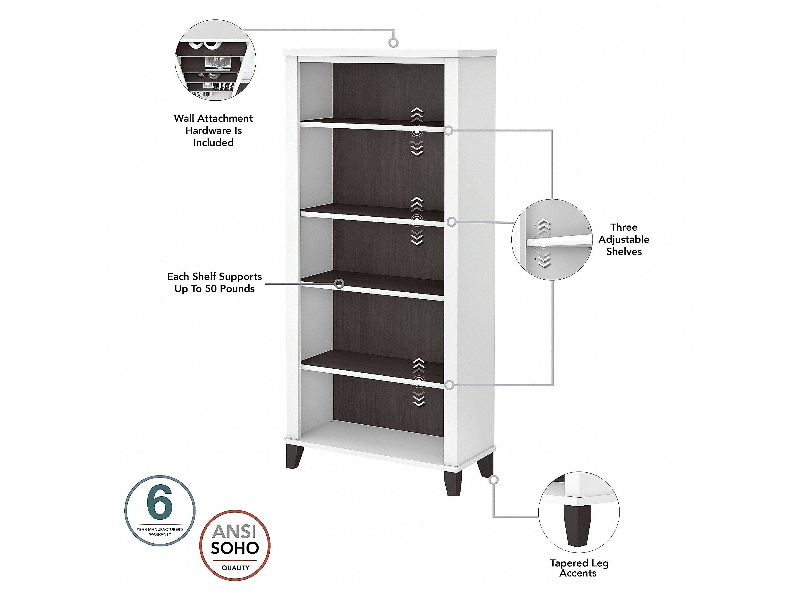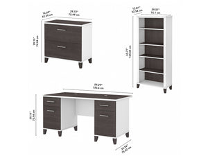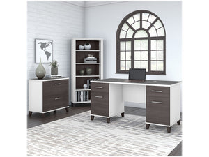 Bush Furniture Somerset 60" Computer Desk with Lateral File Cabinet and 5-Shelf Bookcase, Storm Gray/White (SET013SGWH)
