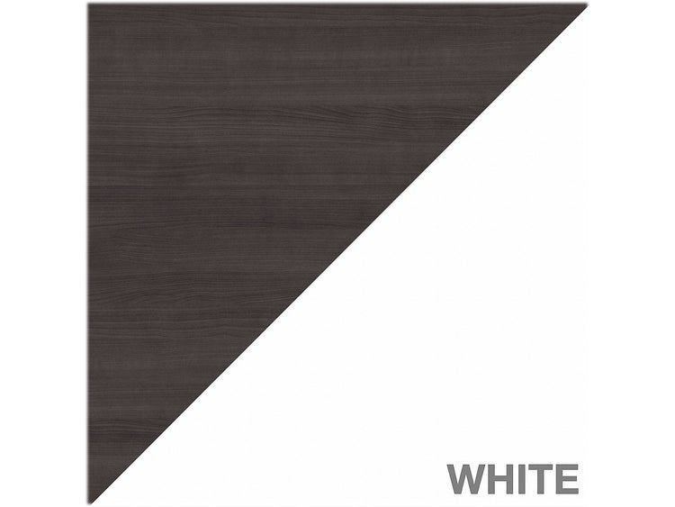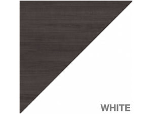 - Made of laminate over engineered wood, comes in storm gray and white finish