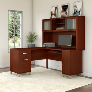 Bush Furniture Somerset 60"W L Shaped Desk with Hutch, Hansen Cherry (SET002HC)