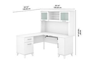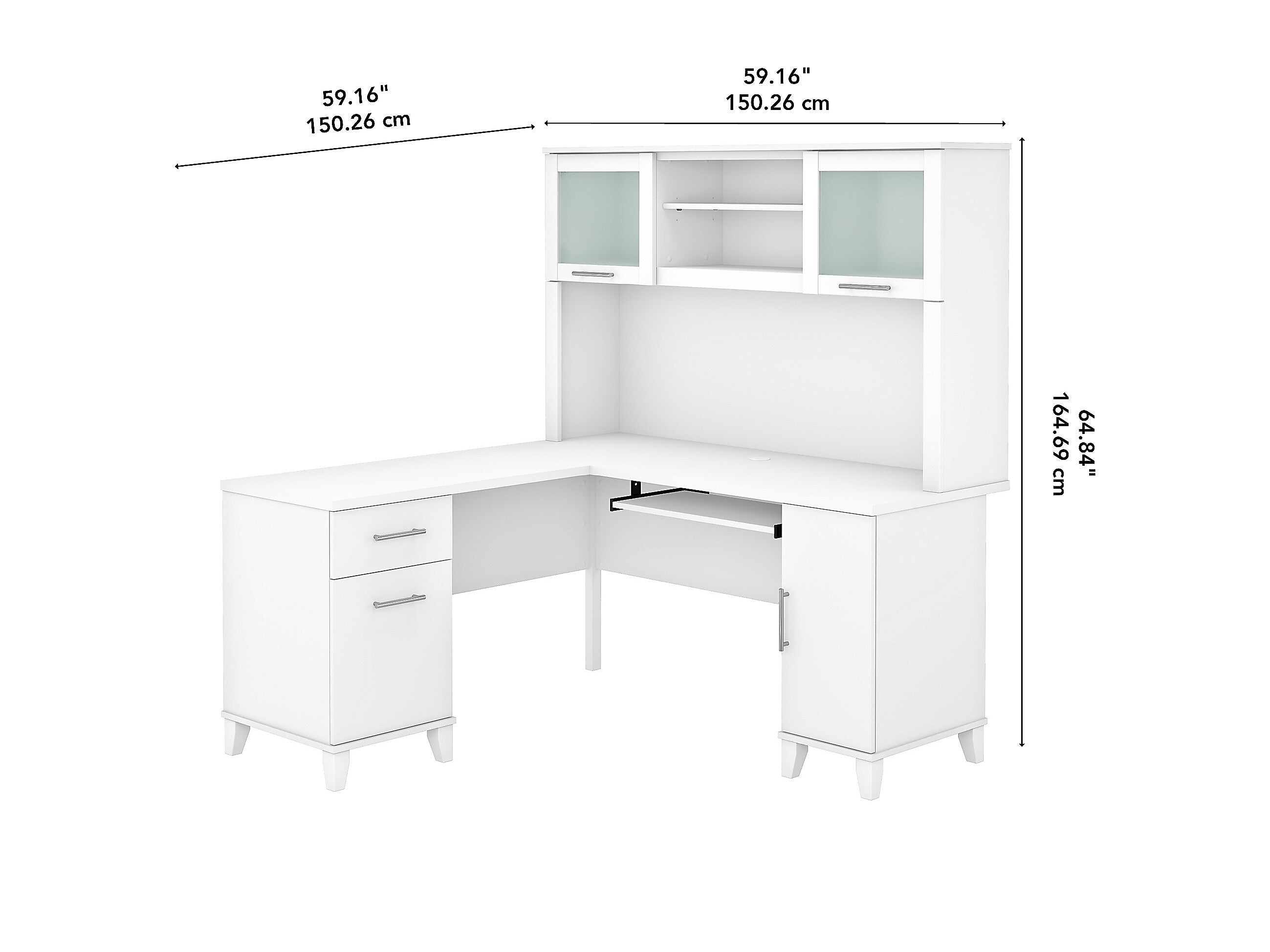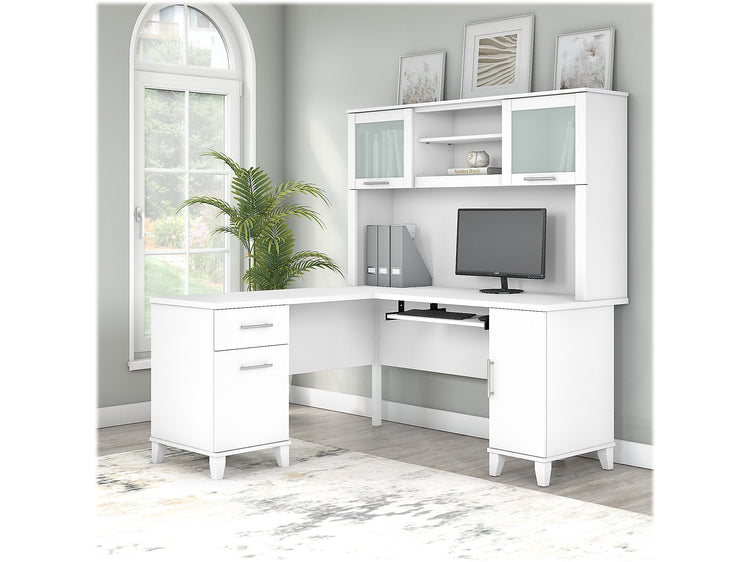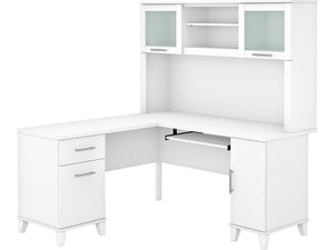 Bush Furniture Somerset 60"W L Shaped Desk with Hutch, White (SET002WH)