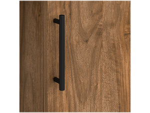 - Vertical storage cabinet contains one adjustable shelf for storing items of various sizes