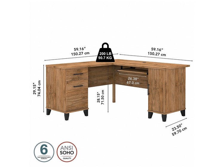 Bush Furniture Somerset 60"W L Shaped Desk with Storage, Fresh Walnut (WC81330K)