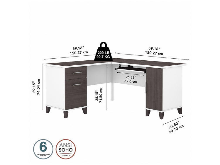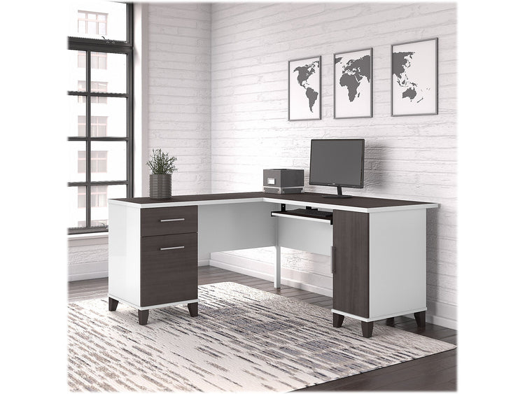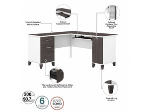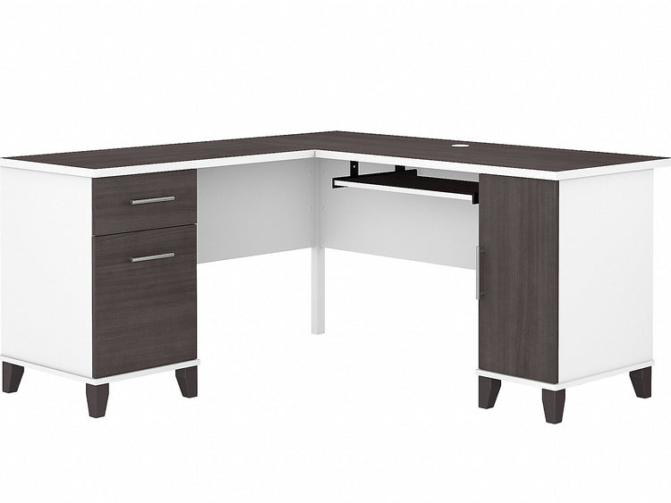Bush Furniture Somerset 60"W L Shaped Desk with Storage, Storm Gray/White (WC81030K)