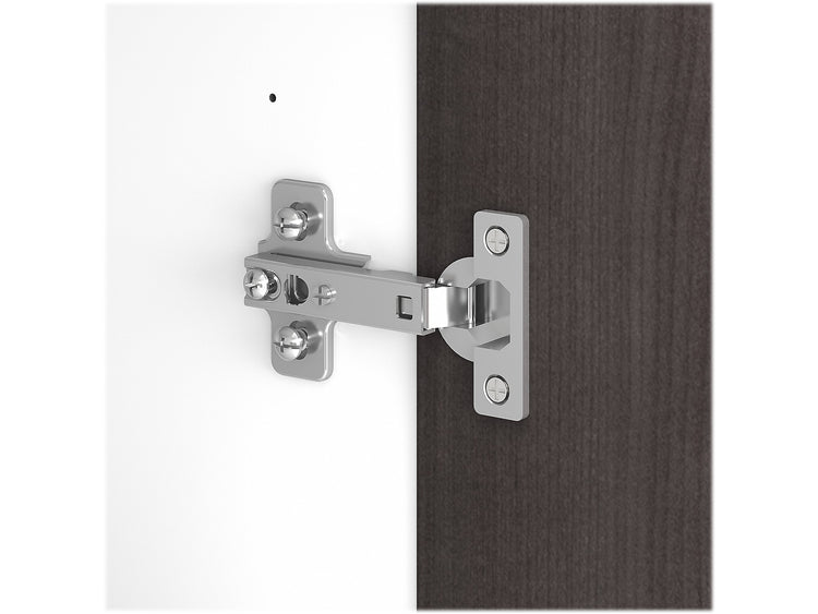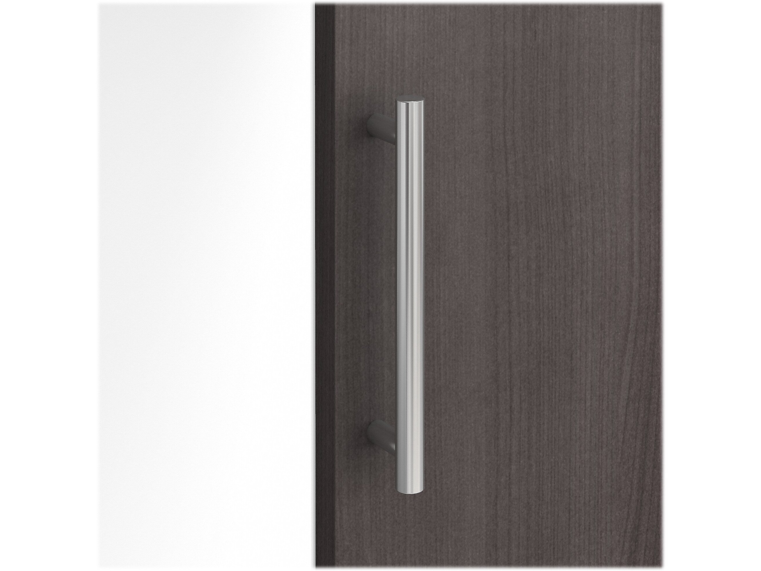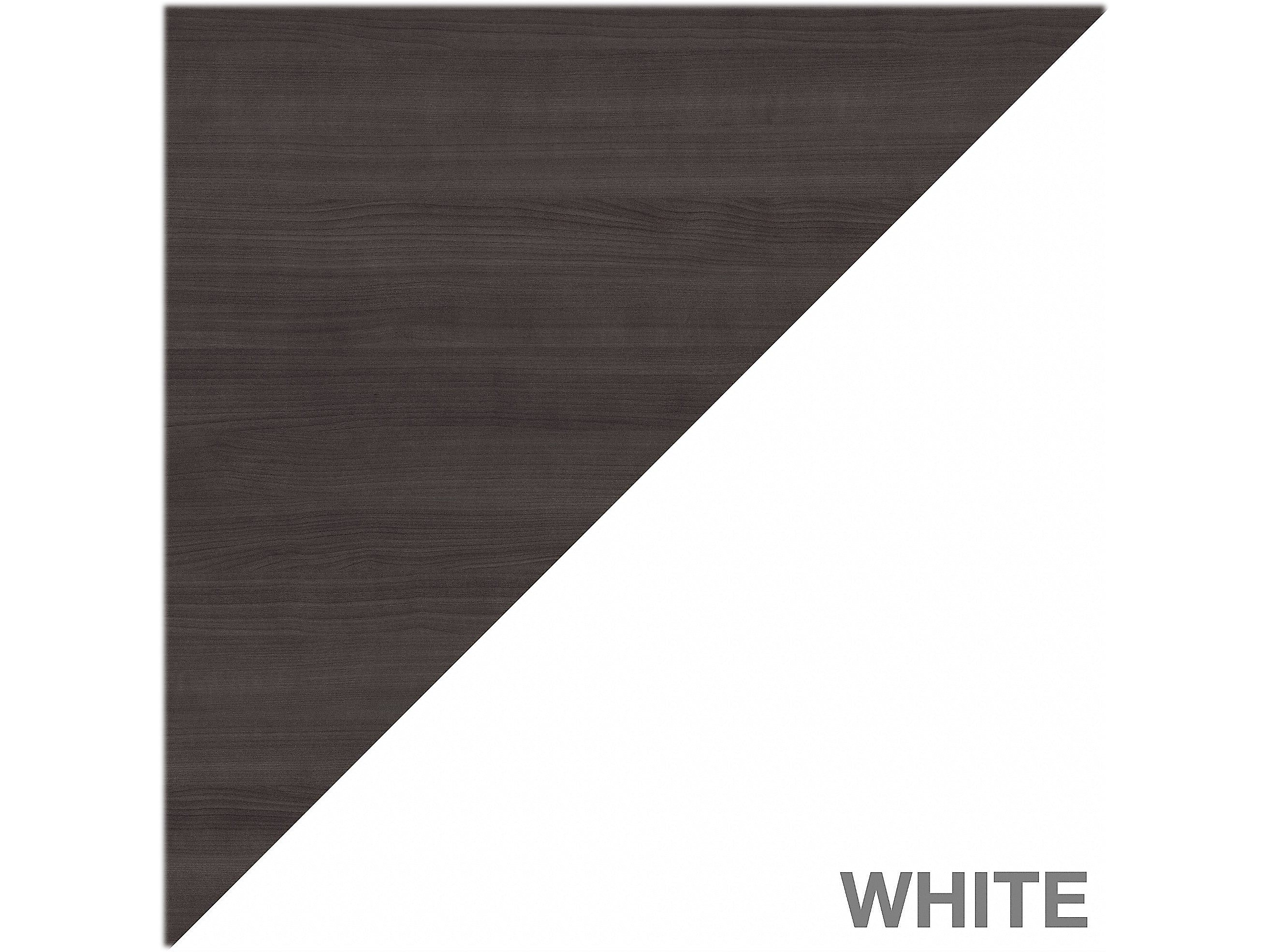 - Made of laminate over engineered wood in storm gray and white finish