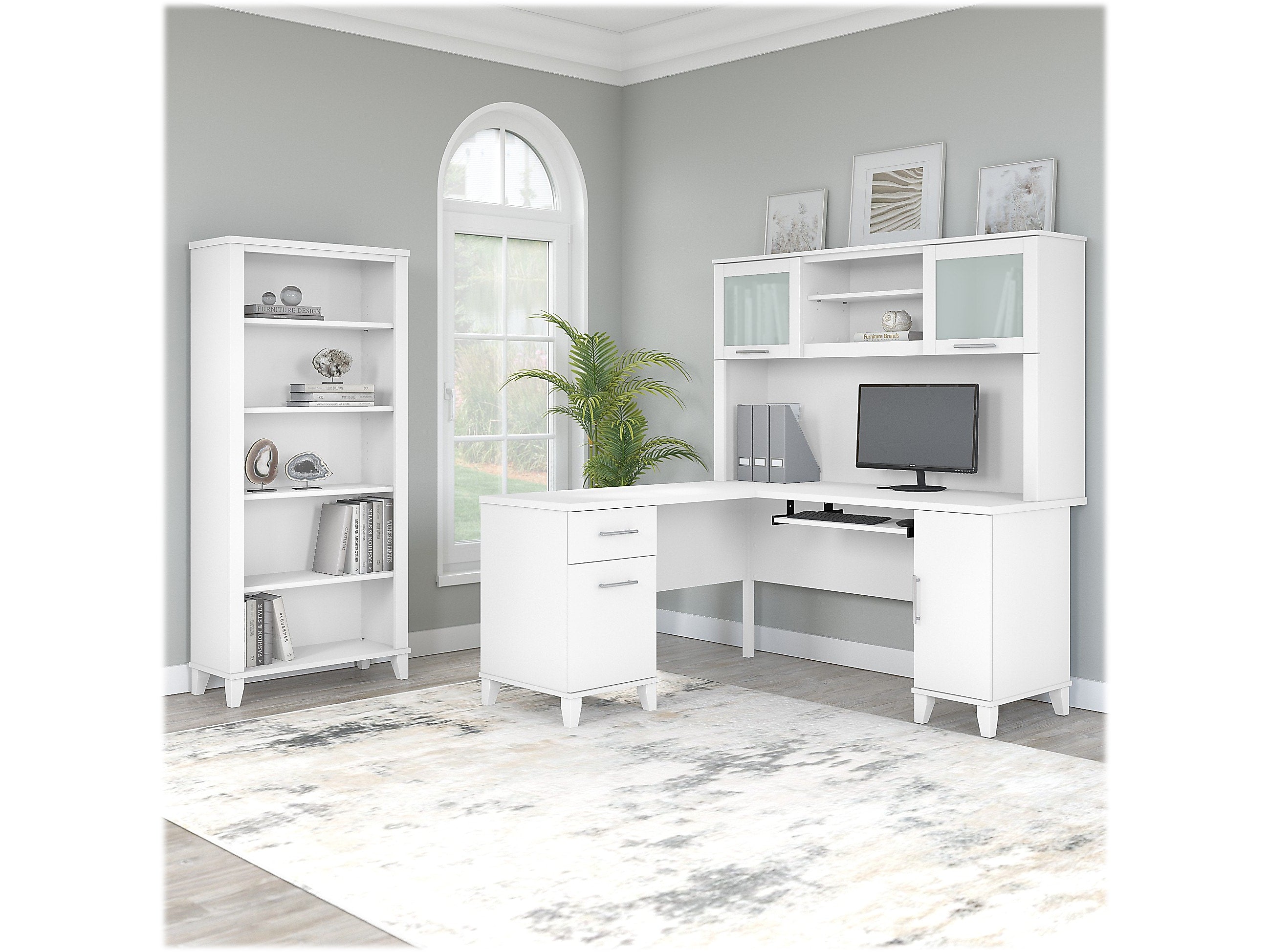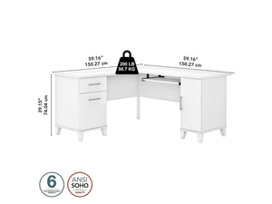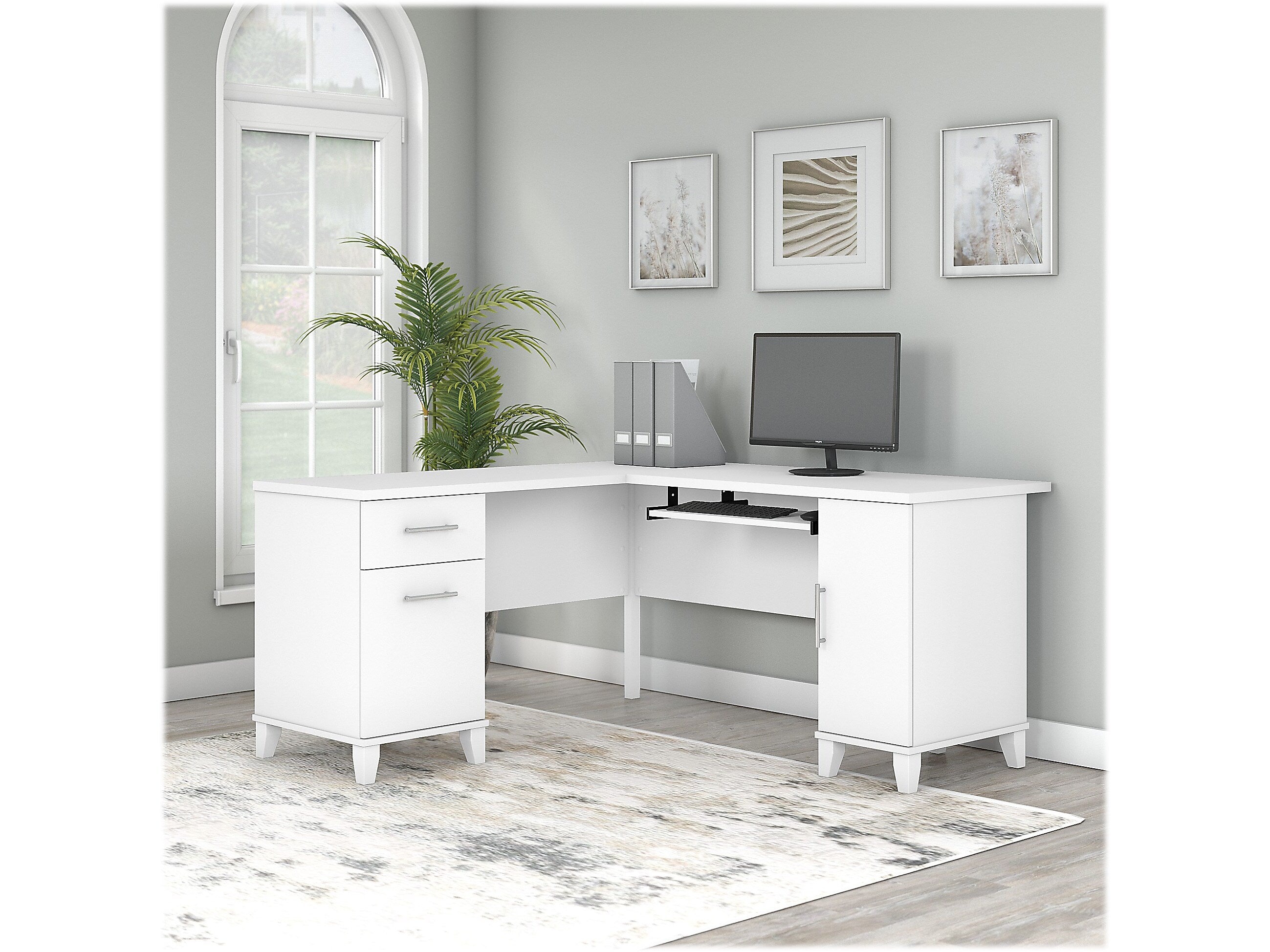 Bush Furniture Somerset 60"W L Shaped Desk with Storage, White (WC81930K)