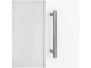 - Vertical storage cabinet contains one adjustable shelf for storing items of various sizes