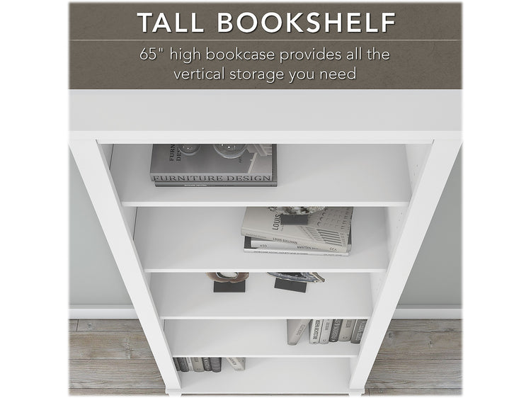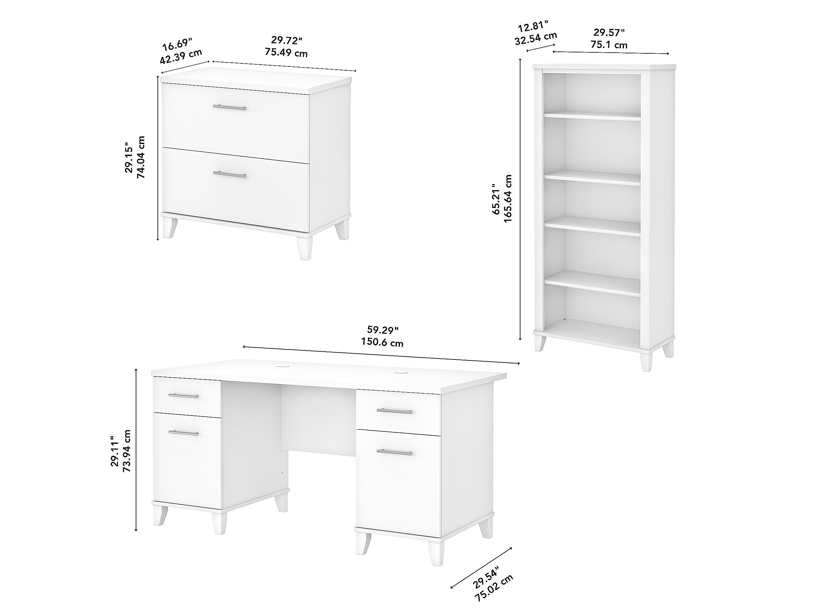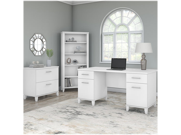 Bush Furniture Somerset 60"W Office Desk with Lateral File Cabinet and 5 Shelf Bookcase, White (SET013WH)