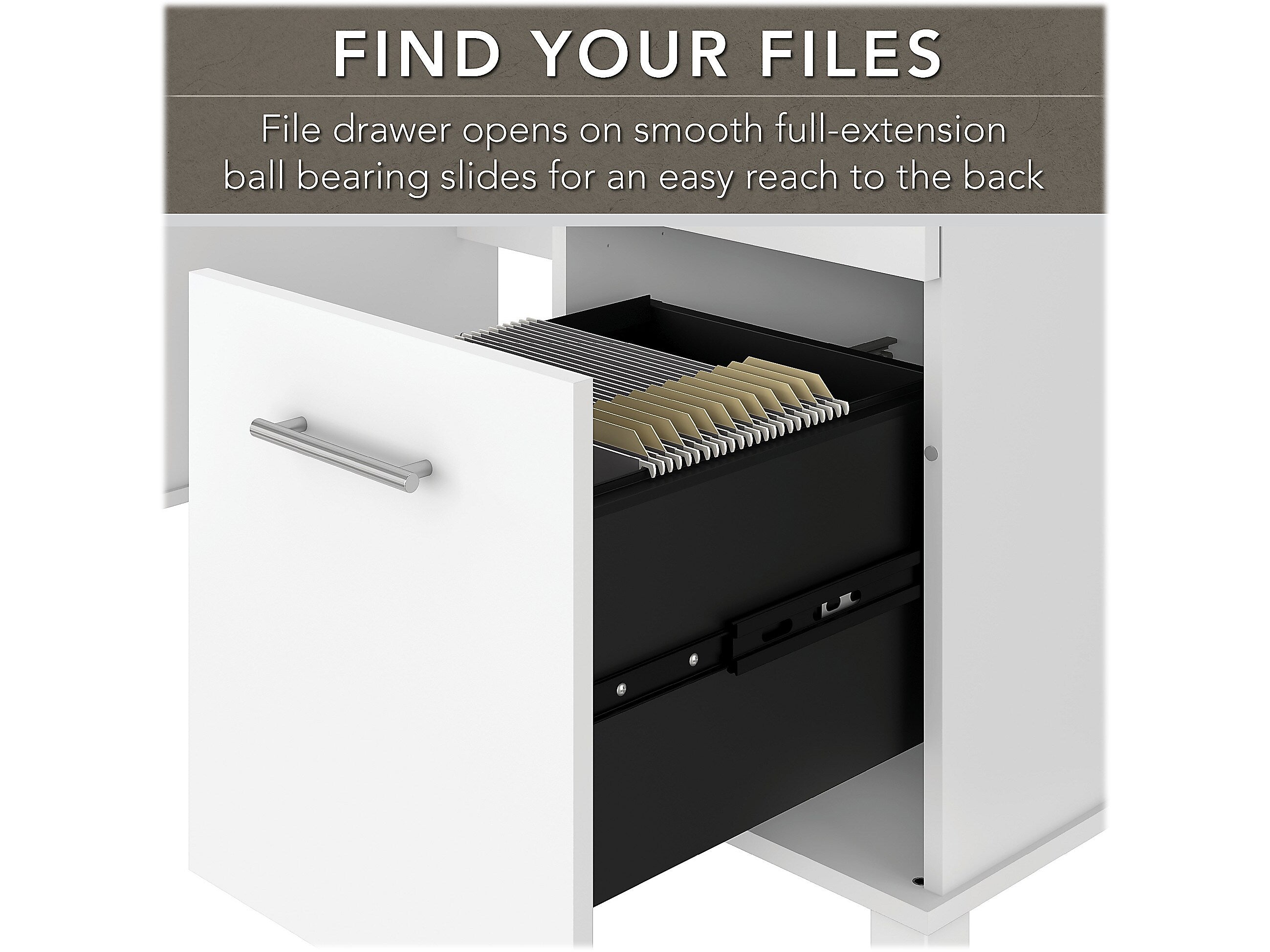 - File drawer opens on full-extension ball bearing slides and accepts legal- and letter-size documents