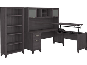 Bush Furniture Somerset 72"W 3 Position Sit to Stand L Shaped Desk with Hutch and Bookcase, Storm Gray (SET017SG)